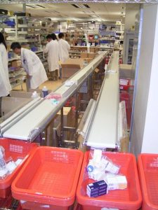 快速配藥系統(Express Dispensing System,EDS)在伊利沙伯醫院專科門診運作,同年,公營醫院又引進第一代藥物處方輸入法(Medication Order Entry,MOE),醫生可使用電腦處方藥物,經電腦系統直接傳送至藥房,減少人手轉抄上的錯誤。藥房收到醫生處方後以「快速配藥系統」配藥。電腦系統的引入是推動藥房電腦化的藥劑師蔣秀珠在一次美國「取經之旅」時參觀一個Pharmacy 2000展覽時發現,然後加以改良成為EDS系統。EDS的設計原理是把藥房設計成多個藥物站,以運輸帶連貫,每個藥物站管理不同類別藥物,而所有藥物早已按經常用量預先包裝。當藥房收到處方藥單,各個藥站會按藥單配出藥物,負責藥物站的配藥員只需把藥物從藥櫃抽出放上運輸帶,運輸帶便會把藥物送到總匯集處,因為每種藥物都是以電腦條碼識別,而電腦條碼亦輸入藥物及病人的資料,故此配藥員根本毋須核對藥物,只要將藥物條碼放在條碼機上核實,由電腦識別,如有錯誤,電腦會出現提示。當完成一整份處方時,電腦會發出「完成指示」,配藥員將一份藥單所有的藥物放進藥籃內,最後由藥劑師審核藥單及配出予病人。EDS系統經改良後於1997年應用到所有公營的專科門診,從此藥房可應付數以千計處方,把輪候藥物時間減低。