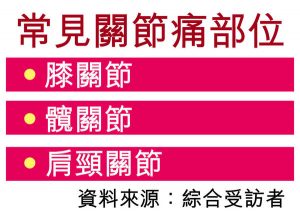 葡萄糖胺種類多 「結晶型」助減關節痛 人體有逾200個關節,不論關節痛或關節腫脹都令人困擾。一項調查指出,48%有關節痛的受訪者曾服用葡萄糖胺營養補充劑,惟大部分人不知道葡萄糖胺有不同種類,未必每一種也有效,籲應向醫生及藥劑師了解。 詳情